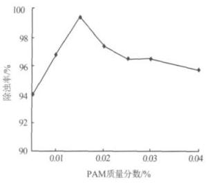 ¡¡¡¡ÓÉͼ3¿ÉÒÔ¿´³ö£¬PAM ¼ÓÈëÁ¿Îª 0.015% ʱµÄÐõÄýЧ¹û×îºÃ£¬³ý×ÇÂʿɴï 99.43% ¡£ ÕâÊÇÒòΪ PAM ´ïµ½Ò»¶¨Á¿Ê±£¬¸´ºÏÐõÄý¼ÁÓëÐõÌåÖ®¼ä²»½ö²úÉú¼ÜÇźÍÍø²¶×÷Ó㬸߷Ö×ÓÖ®¼ä»¹»áÐγÉÈýÎ¬Íø×´µÄ´óÐõÌ壬´Ó¶øÓÐÀûÓÚ³Áµí·ÖÀë¡£µ«´ËʱÈô¼ÌÐøÔö¼Ó PAM ÓÃÁ¿£¬ÕâÖָ߷Ö×Ó¼äµÄÏ໥×÷Óý«»áÏûʧ¡£