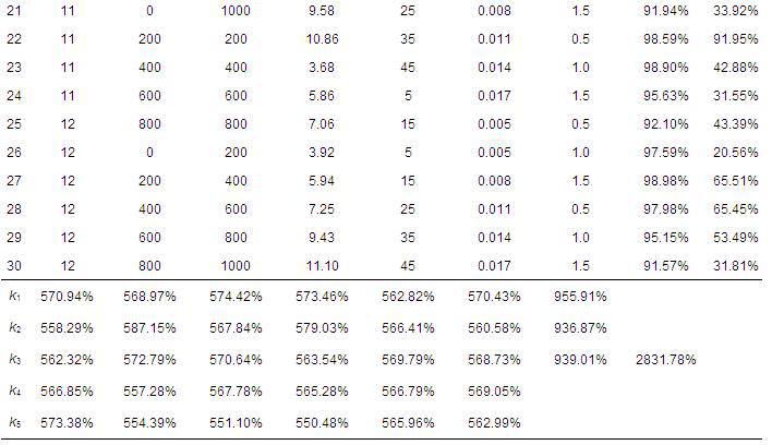 根据上述正交试验表和各因素选取的水平进行正交试验,其结果见表 3.