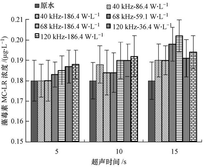 ¡¡¡¡º¬ÔåË®¾¹ý²»Í¬ÆµÂÊ¡¢²»Í¬Ç¿¶È¾²Ì¬³¬Éù²¨×÷Óò»Í¬Ê±¼äºó£¬Ë®ÖÐÔå¶¾ËØ(MC-LR)Ũ¶ÈÈçͼ 4Ëùʾ.´ÓͼÖпɼû£¬¸÷¸öƵÂʵij¬Éù²¨×÷ÓÃ5¡«15 sºó£¬Ë®ÖÐÔå¶¾ËØÅ¨¶È¾ùÔö¼Ó£¬Ç¿¶ÈÔ½´ó¡¢ÆµÂÊÔ½¸ß¡¢×÷ÓÃʱ¼äÔ½³¤£¬Ôå¶¾ËØÊÍ·ÅÁ¿Ô½´ó.³¬Éù10 sÒÔÄÚ£¬Ôå¶¾ËØÊÍ·ÅÁ¿Îª5%×óÓÒ.ÕâÓë¹úÄÚÍâÑо¿½á¹ûÊÇÒ»ÖµÄ.