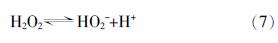 ¡¡¡¡Í¬Ê±£¬H2O2×ÔÉí·¢Éú½âÀë·´Ó¦Éú³ÉHO2-£º