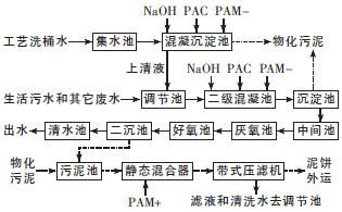 µ÷½Ú³ØÊÕ¼¯»ìÄý³Áµí³ØµÄÉÏÇåÒº¡¢Éú»îÎÛË®ºÍÆäËü¹¤ÒÕ·ÏË®£¬¸Ã»ìºÏ·ÏË®¾ÌáÉý½øÈë¶þ¼¶»ìÄý³Ø£¬¼ÓÈëPAC ºÍPAM ½øÐлìÄý·´Ó¦£¬ÔÙ½øÈë³Áµí³Ø½øÐйÌÒº·ÖÀë¡£·ÖÀëºóµÄÉÏÇåÒº½øÈëÖÐ¼ä³Ø¡£