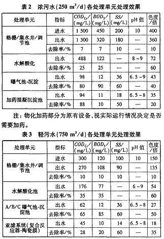 轻污染水(约占75%)一水解氧化一好氧一复合反应器一陶瓷膜一回用浓污染水(约占25%)一水解调节池一混凝池一酸化水解池一接触氧化池一生物滤池一脱色池一排放工艺流程如图3所示。
