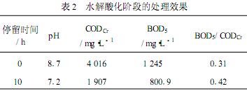 废水经水解酸化处理后各项水质指标的变化情况见表2。