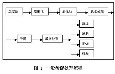 污泥的主要成分是水分(99%左右)和有机物,还有少量的氮化物、磷化物、多环芳烃、农药残留、病原体和重金属离子等。常见污泥处理工艺流程如图1。从污泥的组成成分和处理流程看,污泥减量有两个途径,一是减少有机物的量(消化、焚烧),二是降低污泥的含水率(浓缩、脱水、干燥、焚烧)。第二个途径较第一个简单易行,所以主要介绍污泥的脱水技术。图1一般污泥处理流程。