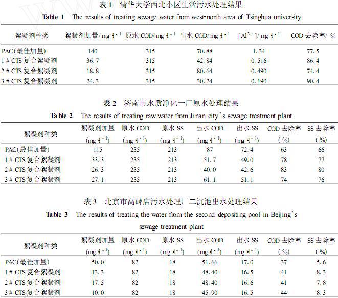 (2)´ÓÒÔÉÏÈýÖÖÉú»îÎÛË®µÄ¶Ô±ÈÊÔÑé½á¹û¿ÉÒÔ¿´³ö£¬¿Ç¾ÛÌǸ´ºÏÐõÄý¼ÁµÄÖ÷Òª¼¼Êõ¾¼ÃÖ¸±ê¾ùÃ÷ÏÔÓÅÓÚ´«Í³ÐõÄý¼ÁPAC£¬ÆäÖÐÒÔ3#CTS¸´ºÏÐõÄý¼ÁЧ¹û×î¼Ñ£¬ËüÓ봫ͳÐõÄý¼ÁPACͬ±È:CODÈ¥³ýÂÊÌá¸ß7¡ª13%£¬SSÈ¥³ýÂÊÌá¸ß3¡ª10%£¬[Al3+]Ͻµ61¡ª85%£¬Ò©¼Á¼ÓÁ¿¼õÉÙ76¡ª82%£¬ÇÒÕâÖÖЧ¹ûËæ×ÅÉú»îÎÛË®CODŨ¶ÈµÄÔö¼Ó¶øÔö¼Ó¡£
