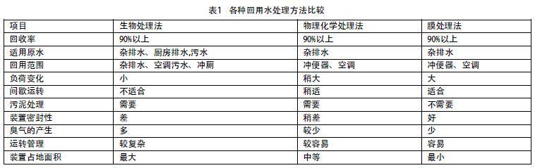 污水回用经过近40年的发展,已成功开发一批先进、可靠、经济适用的污水回用技术并得到较为广泛的推广和应用[6,7],取得了显著的社会效益和经济效益。污水回用技术根据原理可分为物理法、化学法、物理化学法和生物化学法等。单元技术包括: 混凝、沉淀、过滤、活性炭吸附、离子交换、膜分离与微生物反应器、臭氧氧化、光催化氧化、加氧、紫外消毒等[8,9]。各种回用水处理方法比较见表1。