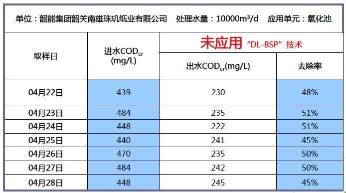¸Ã³§Ó¦ÓÃDL-BSP¼¼Êõ֮ǰ4Ô·ݺÃÑõ¶Î½øË®CODcr400-500mg/L£¬³öË®CODcr200-250mg/L£¬Æ½¾ùÈ¥³ýÂÊΪ50%¡£
