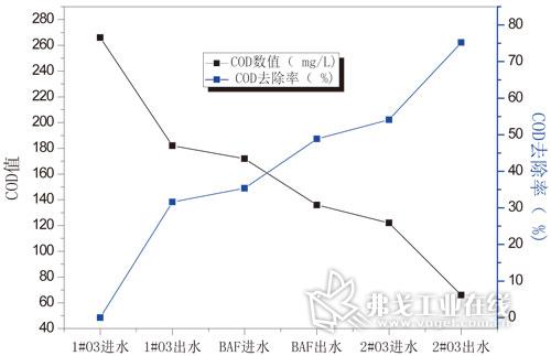 “Ozone-BAF-Ozone”工艺对尾水难降解COD和色度有着很好的处理效果,可以保证出水COD小于80mg/L,满足国家新的焦化废水排放标准;