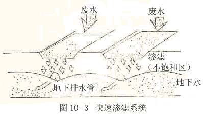 ¿ìËÙÉøÂËÊÇΪÁËÊÊÓ¦³ÇÊÐÎÛË®µÄ´¦Àí³öË®»Ø×¢µØÏÂË®µÄÐèÒª¶ø·¢Õ¹ÆðÀ´µÄ¡£´¦Àí³¡ÍÁÈÀÓ¦ÎªÉøÍ¸ÐÔÇ¿µÄ´ÖÁ£½á¹¹µÄɰÈÀ»òɰÍÁ¡£·ÏË®ÒÔ¼äЪ·½Ê½Í¶ÅäÓÚµØÃ棬ÔÚÑØÆÂÃæÁ÷¶¯µÄ¹ý³ÌÖУ¬´ó²¿·Öͨ¹ýÍÁÈÀÉøÈëµØÏ£¬²¢ÔÚÉøÂ˹ý³ÌÖеõ½¾»»¯£¬Æä¹ý³ÌÈçͼ¡£