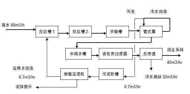 废水总量设计为60m3/hr,该回收系统的进水流量按照1×60m3/hr考虑,也就是说回收处理系统的各处理单元按照1套考虑。