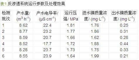 结果表明,系统经过半年的运行,出水电导率始终维持在25 μS/cm以下,反渗透膜对废水中残余重金属镍离子具有较好的截留效果,达80%以上。