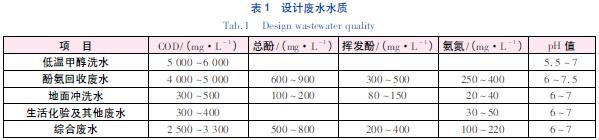 内蒙古某煤制尿素工程废水主要包括低温甲醇洗水、酚氨回收废水、地面冲洗水、生活化验及其他废水,综合废水量为360 m3/h,设计水质见表1。