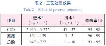 经过6 个月的调试运行,该处理系统运行稳定,耐冲击能力强,出水水质达到《污水综合排放标准》(GB 8978—1996) 的一级标准,具体处理效果如表2所示。。