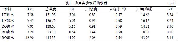 Ó¦ÓÃʵÑéË®ÑùÈ¡×ÔBÁ¶»¯¹«Ë¾ÎÛË®´¦Àí³§³¬ÂË£¨UF£©-RO£¨Ë«Ä¤£©´¦Àí×°Öá£Ó¦ÓÃʵÑéË®ÑùµÄË®Öʼû±í1¡£