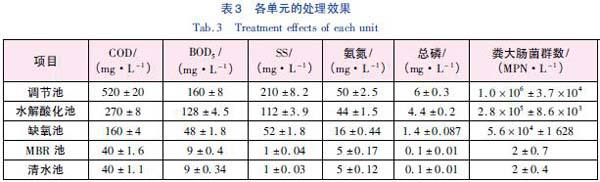 由表3 可见,系统对COD、BOD5、SS、氨氮、总磷、粪大肠菌群数的总去除率分别为92.3%、94.4%、99.5%、90.0%、98.3% 和100%,出水水质满足《生物工程类制药工业水污染物排放标准》(GB 21907—2008) 表2 规定浓度限值及《城市污水再生利用城市杂用水水质》(GB/T 18920—2002)标准。。