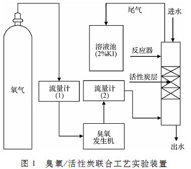 ʵÑé×°Öüûͼ1Ëùʾ¡£³ôÑõÑõ»¯ÊµÑéÔÚÖ±¾¶50mm£¬¸ß600mm£¬ÓÐЧÈÝ»ý700mL£¬ÄÚÖûîÐÔÌ¿²ã£¨¸ßΪ200mm£©µÄ×ÔÖÆÓлú²£Á§·´Ó¦Æ÷ÖнøÐУ¬ÊµÑéǰÏÈÓÃ×ÔÀ´Ë®³åÏ´·´Ó¦Æ÷£¬ÔÙÓÃÈ¥Àë×ÓË®ÇåÏ´Êý´ÎÒÔÈ¥³ý·´Ó¦Æ÷ÖпÉÄÜÏûºÄ³ôÑõµÄ¸ÉÈÅ×é·Ö¡£½«500mL½¹»¯·ÏË®Éú»¯³öˮһ´ÎÐÔתÈë·´Ó¦Æ÷ÖУ¬ÊµÑé²ÉÓÃÁ¬ÐøÍ¶¼Ó³ôÑõ¹¤ÒÕ£¨´ý³ôÑõŨ¶ÈÎȶ¨ºó½øÐÐʵÑ飩£¬³ôÑõ¾¹ý΢¿×ÆØÆøÍ·½øÈë·´Ó¦Æ÷£¬³ôÑõºÍË®ÈÜÒºÔÚ·´Ó¦Æ÷ÖлìºÏ£¬´Ó¶ø·¢ÉúÆø¡¢ÒºÁ½Ïà·´Ó¦£¬³ôÑõÎ²ÆøÓÉ2% KIÈÜÒº½øÐÐÎüÊÕ¡£¿ØÖƺóôÑõͶ¼ÓÁ¿£¬¶¨Ê±£¨5min£©È¡Ñù½øÐзÖÎö£¬ÈÜÒºµÄpHÖµÓÃPHS23C¾«ÃÜpH¼Æ£¨ÉϺ£À×´ÅÒÇÆ÷³§£©²â¶¨£¬COD²ÉÓÃÖØ¸õËá¼Ø·¨²â¶¨¡£¡£