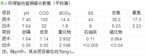 ¡¡¡¡ÓÉͼ2¡¢Í¼3¿ÉÒÔ¿´³ö£¬¸Ãϵͳ¶ÔÂȼ¹¤·ÏË®ÓÐÁ¼ºÃµÄ´¦ÀíЧ¹û£¬CODÈ¥³ýÂÊΪ73.2%£¬°±µªÈ¥³ýÂÊΪ84.6%£¬ÇÒ½øË®³öÏÖ²¨¶¯Ê±£¬³öˮˮÖʲ¨¶¯²»´ó£¬ËµÃ÷¸ÃϵͳµÄ¿¹³å»÷¸ººÉÄÜÁ¦½ÏÇ¿¡£»·±£ÑéÊÕ¼à²âÊý¾Ý¼û±í4¡£