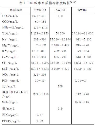 mWRROϵͳROŨˮÖеĻ¯Ñ§ÎÛȾÎï²»½ö°üº¬mWRRO¹¤ÒÕ½øË®£¨¶þ¼¶´¦Àí³öË®£©ÖеÄÎÛȾÎïºÍ¹¤ÒÕÔËÐйý³ÌͶ¼ÓµÄ»¯Ñ§Ò©¼Á£¬»¹°üº¬¶þ¼¶³öË®ÓëËùÌí¼ÓµÄ»¯Ñ§Ò©¼Á·¢Éú¿ÉÄܵķ´Ó¦Éú³ÉеÄÎÛȾÎÈç±´ú»òÕßÑÇÏõ°·ÀàÏû¶¾¸±²úÎï¡£ÒÔ³ÇÊÐÎÛË®´¦Àí³§¶þ¼¶³öˮΪˮԴµÄmWRRO ϵͳRO ŨˮµÄË®ÖÊÌØÕ÷Ã÷ÏÔ²»Í¬ÓÚSWROºÍBWROµÄROŨˮ£¨¼û±í1£©¡£mWRROϵͳROŨˮÖеÄ×ܺ¬ÑÎÁ¿£¨TDS£©¡¢µçµ¼ÂʺÍÒõÑôÀë×ÓŨ¶ÈÃ÷ÏÔµÍÓÚSWROºÍBWROµÄROŨˮ¡£mWRROϵͳROŨˮÏà±È±»¹Ø×¢µÄÎÛȾÎïÖ¸±ê¸ü¶à£¬°üÀ¨ÎÞ»úÑκÍÒõÑôÀë×Ó£¬ÓлúÎï¡¢µªÁ×µÈÓªÑøÎïÖÊ£¬ÒÔ¼°¸ß·çÏÕÓж¾ÎïÖÊ£»SWROºÍBWROϵͳµÄROŨˮÔòÖ÷Òª¹Ø×¢ÎÞ»úÑκÍÒõÑôÀë×ÓÒÔ¼°Ò»Ð©ÌØÊâÔªËØ£¨È纣ˮÖеÄäåÀë×ÓºÍÅ𣬿àÏÌË®ÖеÄSiO2µÈ£©¡£