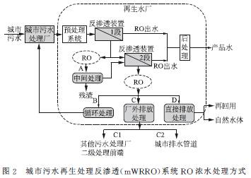 mWRROϵͳROŨˮ¿É¸ù¾Ý²»Í¬´¦ÖÃÄ¿±êÑ¡ÔñÏàÓ¦µÄ´¦Àí·½Ê½£¬Ö÷Òª°üÀ¨£ºÖм䴦Àí·½Ê½£¨A£©£º¶ÔÓÚÁ½¶ÎmWRROϵͳ£¬½«¢ñ¶ÎROŨˮ½øÐÐÖм䴦Àí£¬´¦ÀíºóÔÙ½øÈë¢ò¶Î·´ÉøÍ¸£¬ÒÔÌá¸ßROϵͳµÄ²úË®ÂÊ£¬¼õÉÙ¢ò¶ÎRO ŨˮˮÁ¿¡£Ñ»·´¦Àí·½Ê½£¨B£©£ºROŨˮ¾¹ýÒ»¶¨µÄ´¦Àíºó»ØÁ÷ÖÁ³ÇÊÐÎÛË®´¦Àí³§ÉúÎï´¦Àí¡£³§ÍâÅÅ·Å´¦Àí·½Ê½£¨C£©£ºROŨˮ¾¹ýÒ»¶¨µÄ´¦Àíºó¾Í½üÅÅÈëÆäËûÎÛË®´¦Àí³§¶þ¼¶´¦Àíǰ¶Ë£¨C1£©£¬»ò´ïµ½ÅÅÈë³ÇÊÐÏÂË®¹ÜµÀÒªÇóºó£¬ÅÅÈë³ÇÊÐÅÅË®¹ÜµÀϵͳ£¨C2£©¡£Ö±½ÓÅÅ·Å´¦Àí·½Ê½£¨D£©£ºROŨˮ¾¹ý´¦Àíºó£¬¿É³§ÇøÄÚÔÙ»ØÓ㬻òÕßÍâÅÅÖÁºÓµÀ¼°ÆäËû×ÔȻˮÌå¡£