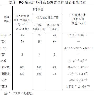 ¸ù¾ÝÒÑÓÐÎÄÏ×Ëù±¨µÀµÄmWRRO ϵͳRO ŨˮµÄË®ÖÊÖ¸±ê£¬½áºÏÉÏÊö±ê×¼Ïà¹ØÖ¸±êµÄÅÅ·ÅÏÞÖµ£¬±¾ÎĽ¨Òé¶ÔÓÚ³§ÍâÅÅ·Å´¦ÀíÒÔµª£¨ÈçTN¡¢NH3-NºÍNO3-£©¡¢Á×£¨TPºÍPO43-£©ºÍÎÞ»úÑΣ¨ÈçTDS¡¢ÂÈ»¯Îï¡¢ÁòËáÑκÍNa+£©ÎªÖ÷Òª¿ØÖÆÄ¿±ê£¨Èç±í2Ëùʾ£©¡£ÓÉÓÚ²»Í¬ÎÄÏ×ËùÊömWRRO½øË®Ë®ÖʵIJ»Í¬ºÍROϵͳ²Ù×÷²ÎÊýºÍ»ØÊÕÂʵȵIJ»Í¬£¬µ¼ÖÂÁËͬһָ±êÔÚROŨˮÖеÄŨ¶È²îÒì½Ï´ó¡£±í2Ö»ÁÐÁËһЩÔÚROŨˮÖÐŨ¶È³¬³öÎÛË®ÅÅÈë³ÇÕòÏÂË®µÀË®Öʱê×¼ÏÞÖµµÄÖ¸±ê£¬ÒÔ±ãÃ÷È·³§ÍâÅÅ·Å´¦Àí·½Ê½µÄÖØµã¿ØÖÆÄ¿±ê¡£ÁíÍ⣬TDSºÍNa+ÔÚÉÏÊöÁ½¸ö±ê×¼ÖÐûÓÐÌá¼°£¬µ«ÊÇ¿¼Âǵ½Ñζȡ¢ÃܶȽϸߵÄŨËõË®ÅÅÈë¹ÜµÀ»áÔڵײ¿»ýÀ۷ֲ㣬¶øÇÒNa+Ũ¶ÈÌ«¸ß»áÒýÆðÖ²Îï¶¾ÐÔ£¬Èç175mg/LµÄCl-ºÍ115mg/LµÄNa+ÊǵιàÖÐһЩÃô¸ÐÖ²ÎïµÄ°²È«Öµ£¬Òò´Ë½¨ÒéÕâÁ½¸öÖ¸±êÒ²×÷Ϊ³§ÍâÅÅ·Å´¦ÀíµÄ¿ØÖÆÄ¿±ê¡£