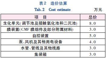 运行过程中吨水耗电为0.6 kW爛h,按照电价为0.5元/(kW爛h) 计算,电费需要15元/d.药剂费为0.02元/m3,1元/d.总费用为76元/d,中水价格按照1.70元/m3 计算,自来水价格按照5.0元/m3计,使用再生水节约费用为3.3元/m3,节省用水成本为5.4 万元/a.。