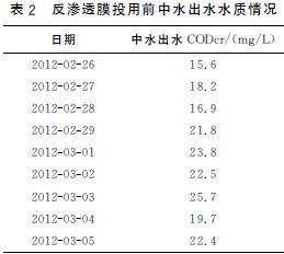 2012Äê3ÔÂ6ÈÕ·´ÉøÍ¸Ä¤Í¶ÓÃǰ£¬ÖÐË®³öˮˮÖÊCODcr£¨±í2£©Æ½¾ùֵΪ20£®7mg£¯L£»2012Äê3ÔÂ6ÈÕ·´ÉøÍ¸Ä¤Í¶Óúó£¬ÖÁ2012Äê3ÔÂ14ÈÕ£¬³öˮˮÖÊCODcr¾ù£¼10mg£¯L£¬¿É¼û·´ÉøÍ¸Ä¤Ó¦Óúó¶ÔCODcrµÄ³ýȥЧ¹ûÀíÏë¡£¾ßÌåÊý¾Ý¼û±í2¡£