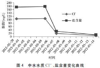 2012Äê3ÔÂ6ÈÕ·´ÉøÍ¸Ä¤Í¶ÓÃǰ£¬¸ÆÓ²¶È¡¢Cl-º¬Á¿¡¢Ñκ¬Á¿µÈÊý¾ÝÏà¶ÔÆ«¸ß£¬»ØÓõ½Ñ»·Ë®ºó£¬¶ÔÑ»·Ë®µÄÖ¸±ê´æÔÚÒ»¶¨Ó°Ï죬µ«ÊÇ·´ÉøÍ¸Ä¤Í¶Óúó£¬ÖÐˮˮÖÊÓÐÁ˺ܴóÌá¸ß£¨±í3¡¢Í¼3ºÍͼ4£©¡£