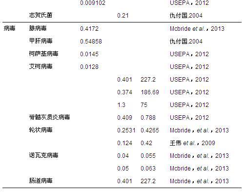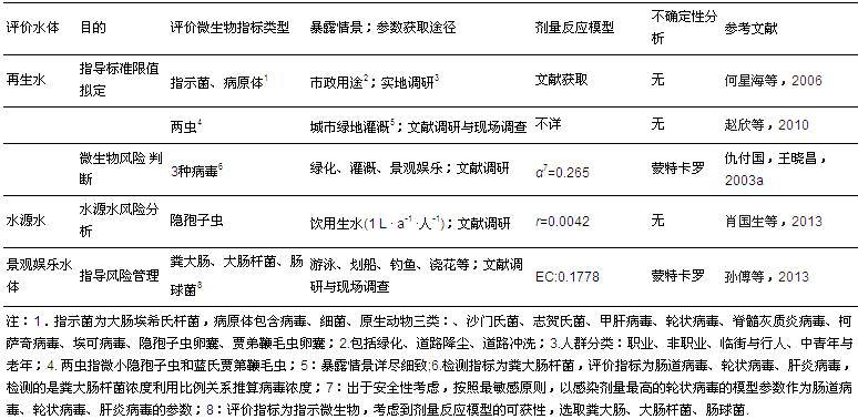 ¡¡¡¡×¢£º1.BMPbest management practise£¬ÁÙºÓÇøÓòÉèÖÃÕ¤À¸½ûÄÁ´ëÊ©¶ÔºÓÁ÷²¡Ô΢ÉúÎï·çÏÕµÄÓÐЧÐÔÆÀ¹À;2.MARmanaged aquifer recharge£¬º¬Ë®²ã²¹¸ø¹ÜÀí;3.¿¼²ìÔÚ˽ÈËÂ̵ؽ½¹àµÄÇ龰ϵÄÈýÖÖ±©Â¶Í¾¾¶£¬³£¹æ±©Â¶Ö¸Òò½Ó´¥Ö²Îï¡¢²ÝƺµÈÖ±½ÓÉãÈëµÄ£¬Ë®ÎíÉãÈëÖ¸½½Ë®Ê±ÎüÈëµÄÆøÈܽº;4.ÆäËû¼ÁÁ¿·´Ó¦Ä£ÐÍÓëÏà¹Ø²ÎÊý²Î¼û;5. ÈÕ³£ÒûË®2.72 LÖÐÉúˮռ±È5.65%£¬Å¼È»ÉãÈë°üÀ¨£ºË¢ÑÀ¡¢¹ûÊ߲;ߵȲÐÁôË®µÄÉãÈë;6.¶ÔÃâÒßȱÏÝÈËȺ²ÉÓÃÖ¸ÊýÄ£ÐÍ£¬ÃâÒß¹¦Äܽ¡È«ÈËȺ²ÉÓæ²´ËÉ·Ö²¼Ä£ÐÍ;7.ÓêÌì¾ÓÃñÇøÅÅË®¡¢¹¤ÒµÅÅË®¡¢Å©Òµ¾¶Á÷¡¢ºÏÁ÷ÖÆÒçÁ÷ÎÛË®¡¢Áֵؾ¶Á÷;8£ºÁ½³æÖ¸Î¢Ð¡Òþæß×Ó³æºÍÀ¶ÊϼֵڱÞë³æ;9.Ö¸ÊýÄ£ÐÍ£ºÏÙ²¡¶¾(r=0.4172)¡¢Òþæß×Ó³æ(r=0.05)¡¢¼ÖµÚ±Þë³æ²¡(r=0.02);²´ËÉ·Ö²¼Ä£ÐÍ£º³¦µÀ²¡¶¾(¦Á£¬¦Â=0.401£¬227.2)¡¢ÅµÍ߿˲¡¶¾(¦Á£¬¦Â=0.04£¬0.055)¡¢ÂÖ×´²¡¶¾(¦Á£¬¦Â=0.2531£¬0.4265)¡¢É³ÃÅÊϾú(¦Á£¬¦Â=0.33£¬139.9).
