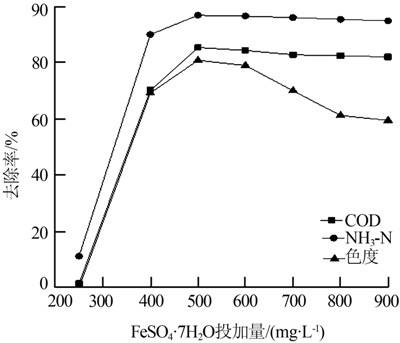 图 2 FeSO4·7H2O投加量对处理效果的影响