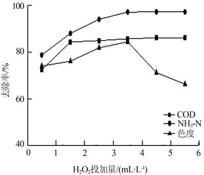 图 3 H2O2投加量对处理效果的影响