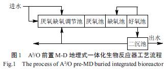 ÆäÖУ¬A2/O ǰÖÃM-D µØÂñʽһÌ廯ÉúÎï·´Ó¦Æ÷Á÷³Ì¼ûͼ1¡£
