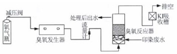 试验采用图1 所示工艺流程。其中臭氧反应器为自制管式玻璃反应器,其管径58 mm,有效高度500 mm,采用钛合金微孔布气曝气头布气。