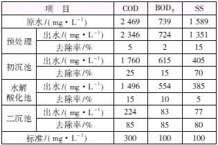 污水处理各工段出水水质见表1。