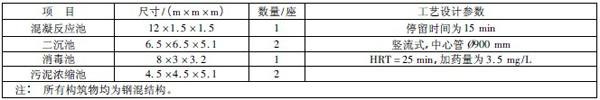 表2 主要构筑物及设计参数