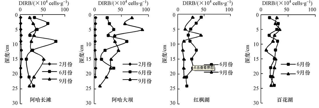 图5 贵阳市不同水库沉积物中DIRB含量的季节特征(罗光俊等,2014)(注:0 cm为沉积物表层,深度数值越大,表明沉积物深度越大)