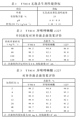 1 TY414高效无泡杀生剂的性能及效果评定