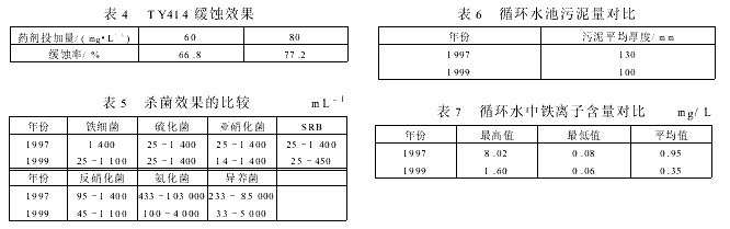 从1999年6月我公司选用TY414杀生剂后收到了令人满意的效果。具体数据见表5。
