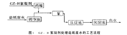 3 GZ-H絮凝剂处理造纸废水的工艺流程GZ-H絮凝剂处理造纸废水的工艺流程如图1所示。