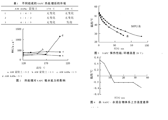 1.3 保温实验在装有温度计并预热为一定温度的容器中,加入温度相同的1gSAPC和200mL水,环境温度是20℃。将此容器放置在热绝缘板上,按照预定时间