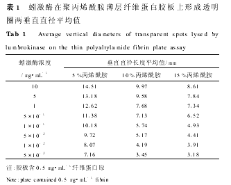 2.4 ÈÜ˨»îÐԵ͍Á¿·ÖÎöÒÔ͸Ã÷ȦÁ½´¹Ö±Ö±¾¶µÄËãÊõƽ¾ùֵƽ·½µÄ¶ÔÊýΪ×Ý×ø±ê£¬ÒÔò¾¼¤Ã¸ÈÜҺŨ¶ÈµÄ¶ÔÊýΪºá×ø±ê£¬ÓÃÈí¼þOrigin5.0×÷ÇúÏߣ¬½øÐлعé·ÖÎö£¬¿ÉÖªò¾¼¤Ã¸Å¨¶ÈÔÚ0.01¡«5mg.mL-1Ö®¼äʱ³ÉÁ¼ºÃµÄÏßÐÔ¹ØÏµ£¬Y=0.266X+1.7778£¬r=0.9997¡£Öظ´ÐÔÊÔÑéÖвâµÃµÄ5¸ö͸Ã÷ȦÁ½´¹Ö±Ö±¾¶£¬¼ÆËãRSD=3.83%£¬±íÃ÷±¡²ã¾Û±ûÏ©õ£°·ÏËάµ°°×½º°å·¨Öظ´ÐԺã¬Âú×ãÌåÍâÈÜ˨»îÐÔ¼ì²â¼ø¶¨µÄÒªÇó¡£±¾ÊµÑ齨Á¢±¡²ã¾Û±ûÏ©õ£°·ÏËάµ°°×½º°å·¨Ä¿µÄÊǼì²â¼ø¶¨ÈÜ˨»îÐÔ£¬Èô¸ü»»¼ì²âÑùÆ·ºÍµ×Î¸Ã·½·¨Ò²¿ÉÓÃÓÚÆäËûµ°°×ø»îÐԵľ«È·²â¶¨£¬²¢¿ÉͬʱÓöàÖÖµ×ÎïÖÆ×÷±¡²ã¾Û±ûÏ©õ£°·½º°å£¬¸ù¾Ý»îÐÔ²»Í¬¶øÑо¿ÑùÆ·µÄµ×ÎïרһÐÔ¡£×ÛÉÏËùÊö£¬±¡²ã¾Û±ûÏ©õ£°·ÏËάµ°°×½º°å·¨¾ßÓÐÁéÃô¶È¸ß¡¢¾«È·¶ÈºÃ¡¢Í¨Á¿´ó¡¢É豸¼òµ¥ºÍÑùÆ·ÓÃÁ¿ÉÙµÈÓŵ㣬ÊÊÓÃÓÚ¸ßͨÁ¿µÄÈÜ˨ҩÎïɸѡ¼ø¶¨ºÍÈÜ˨²úÆ·ÖÊÁ¿¿ØÖÆ£¬ÊÇÒ»ÖÖÖµµÃÍÆ¹ãµÄÈÜ˨»îÐÔÌåÍâ¼ì²â·½·¨¡£