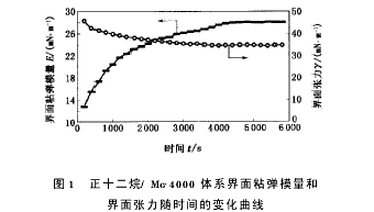 (1)正十二烷/聚合物体系液膜的稳定过程可以通过界面粘弹模量随时间的变化曲线来表示,是典型的由扩散控制的界面吸附平衡过程。