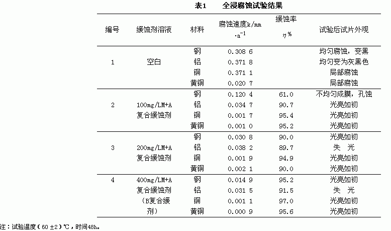 全浸腐蚀试验结果列于表1