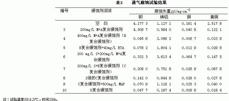 通气腐蚀试验结果见表2。