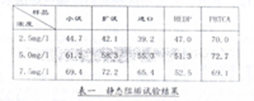 综合以上试验结果,可以看出配方一从缓蚀角度略优于现用配方DCI—04(含磷配方),且具有药剂停留时间长的特点。完全达到了无磷绿色环保水处理药剂的目标要求。