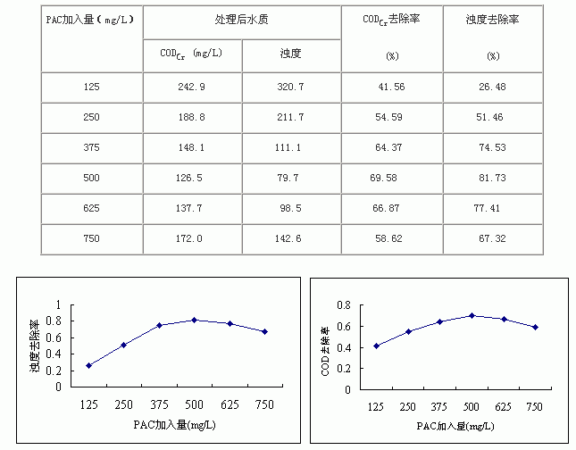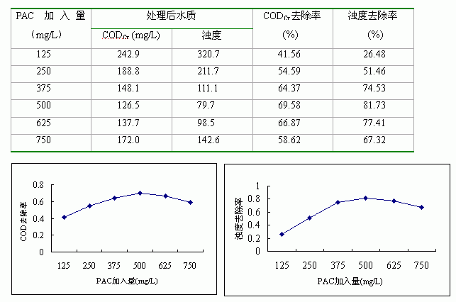 表3 PAC加入量对CODCr、浊度去除率的影响