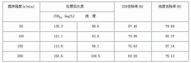 表4 搅拌强度对CODCr、浊度去除率的影响