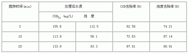 表5 搅拌时间对CODCr、浊度去除率的影响
