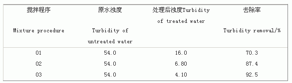 ÓÉÉϱí¿ÉÒÔ¿´³ö×ǶÈÈ¥³ýÒÀ´ÎÅÅÐòΪ03>02>01¡£Õâ±íÃ÷½Á°èËٶȵĹý¶ÉÔ½»ºÂý£¬Ô½ÓÐÀûÓÚѹËõË«µç²ã¼°µçÐÔÖкÍ×÷ÓúÍÎü¸½¡«¼ÜÇÅ×÷Ó㬽ºÌåÏ໥Äý¾Û³É´ó¿ÅÁ££¬Öð½¥³ÁµíÏÂÀ´£¬·¯»¨µÄÐγÉÓë³Á½µÔ½ºÃ¡£Ëæ×Å·´Ó¦Ëٶȵȼ¶µÄÔö¼Ó(½Á°è³ÌÐò02¡¢03)Ч¹ûÔ½À´Ô½ºÃ¡£Òò´Ë×î¼ÑµÄ½Á°èËÙ¶ÈΪ³ÌÐò03¡£