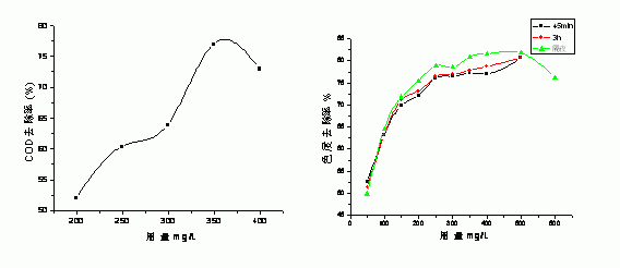 实验结果还表明,COD在偏碱性条件下去除率较高,但碱性较高时,絮凝剂则会失效。