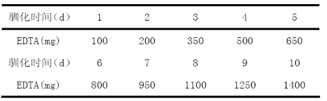 Ⅰ.每天定量加入一定浓度的EDTA溶液,开始驯化(这里只列出10L池的加入量,1L池加入量为其1/10)。